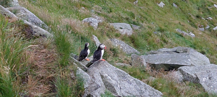 The Runde Island is one of Norway's most famous birdwatching sites. The most interesting bird, with a nesting place there is the Atlantic puffin. There, we can really see the birds up close, but only a parking on the bottom of the island can be reached by car: the rest of the route is must be made on foot, which means one hour walking plus half hour light rock climbing one way. If you can, go in dry weather, the rocks are slippery! We visited at a rainy day, the tour is as well as can be done, and definetly a wonderful experience.